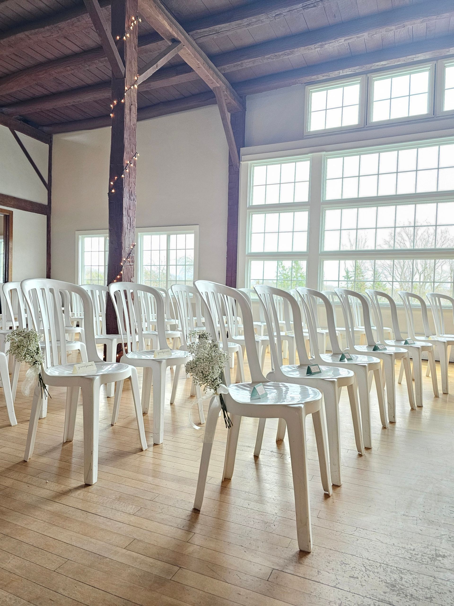 Dance the night away in our spacious Hayloft Reception Hall. With soaring 35' ceiling heights, hardwood dance floor and unique lighting, the setting is dramatic for a memorable time.